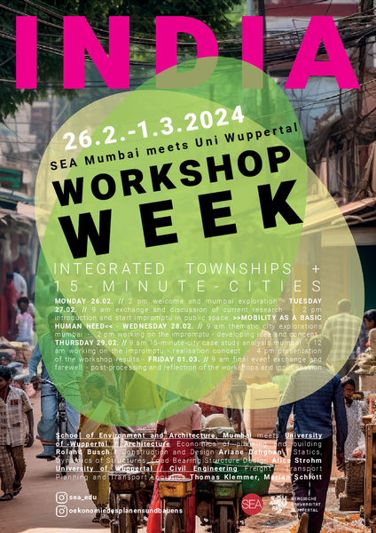 Im Rahmen einer Summer School besuchen Studierende vom Lehrstuhl Ökonomie des Planens und Bauens sowie Studierende der Fachrichtung Güterverkehrsplanung und Transportlogistik Mitte Februar die School of Environment and Architecture in Mumbai, Indien.