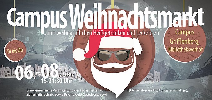 Organisiert wird der Weihnachtsmarkt von den Fachschaften Geistes- und Kulturwissenschaften, Psychologie, Sicherheitstechnik und Soziologie/Sowi.
