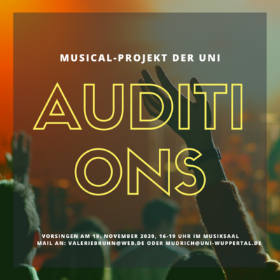 Für ein neues Musicalprojekt im Wintersemester sucht das Team der Fachgruppe Musikpädagogik Darsteller*innen. Studierende und Beschäftige sind eingeladen, am Donnerstag, 19. November, von 16 bis 19 Uhr an den Auditions teilzunehmen. Sie finden statt im Musiksaal auf dem Campus Grifflenberg (M.09.01).