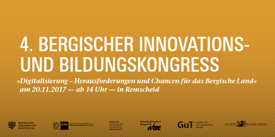Im November findet der 4. Bergische Innovations- und Bildungskongress statt. Veranstalter sind die IHK Wuppertal-Solingen-Remscheid, die Bergische Struktur- und Wirtschaftsförderungsgesellschaft, die Technologiezentren aus Solingen und Wuppertal sowie die Bergische Uni.