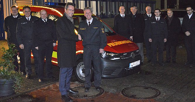 Feuerwehr-Chef Ulrich Zander und Sicherheitsdezernent Matthias Nocke übergaben das Fahrzeug jetzt offiziell an die Uni. Bei dem Termin ebenfalls anwesend war Dr. Jan Heinisch, Vorsitzender des Verbandes der Feuerwehren in NRW.