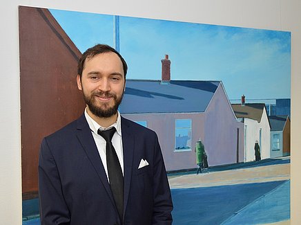 Ab sofort ist im Rektoratsgebäude eine neue Ausstellung zu sehen. Gezeigt werden Kunstwerke der Kunststudierenden Lisa Mrozinki und Patrick Jaksic. Mrozinski beschäftigt sich in ihren Werken mit architektonischen Formen, besonders mit Umrissen und Negativräume zwischen Gebäuden.