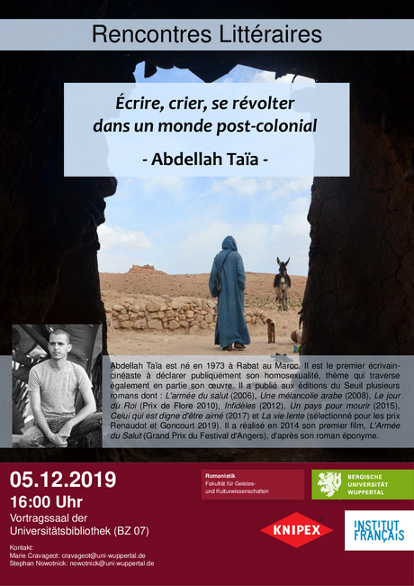 5. Dezember, zu Gast an der Bergischen Uni. Er spricht im Rahmen der Reihe „Rencontres littéraires“ über seine Arbeit als Schriftsteller und Filmemacher.