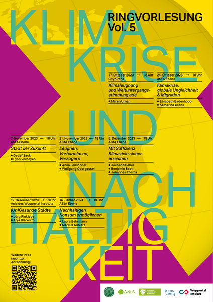 Transzent, der AStA und die Students for Future der Bergischen Uni sowie das Wuppertal Institut laden zur fünften Runde ihrer Ringvorlesung zum Thema Klimakrise und Nachhaltigkeit ein.