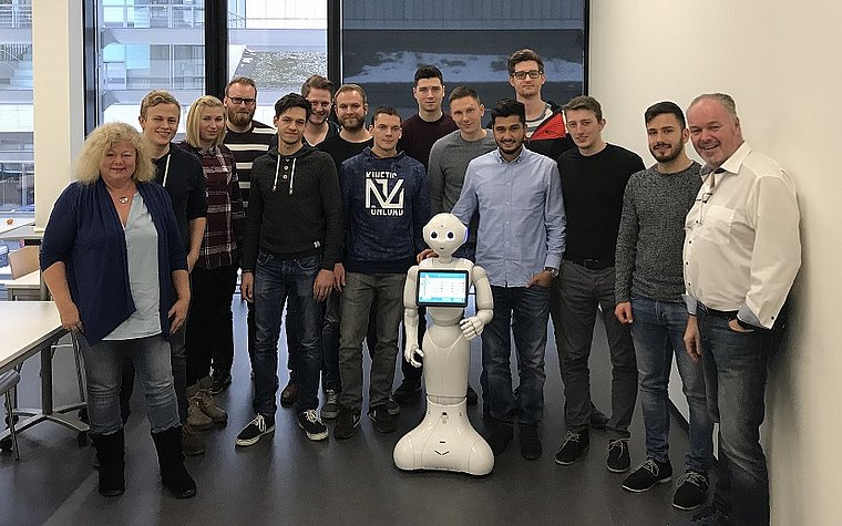 Der Roboter „Pepper“ war zu Besuch an der Uni. Auf Einladung von Dr.-Ing. Gabriele Hoeborn besuchte er gemeinsam mit seinem „Vater“ Rainer Becker die Vorlesung „Managementmethoden“ und zeigte den Studierenden aus den Master-