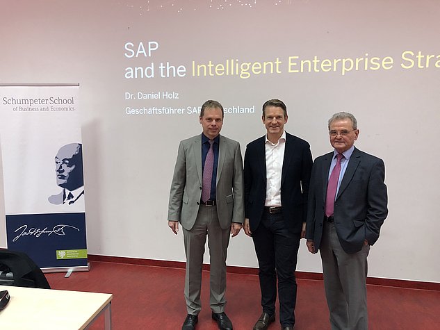 Auf Einladung von Prof. Dr. Norbert Koubek, Sprecher des Vorstandes der Schumpeter School Stiftung, sprach er vor rund 500 Interessierten in der Vorlesung „Einfüh-