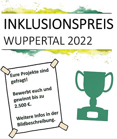 Der Wuppertaler Inklusionspreis wird 2022 zum ersten Mal verliehen und steht unter dem Motto: „Selbstbestimmtes Leben – Stadt ohne Barrieren“. Die Stadt Wuppertal zeichnet damit Aktivitäten aus, die sich für ein inklusives Miteinander und Chancengleichheit von Menschen mit und ohne Behinderungen einsetzen.