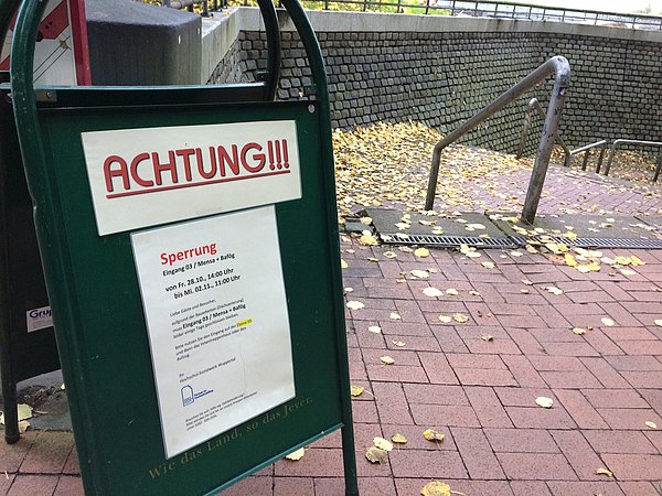 Ab Freitag, 28.10., bis Mittwoch, 2.11., ist der Eingang zur Mensa und Cafeteria auf Ebene 03 wegen Bauarbeiten gesperrt.